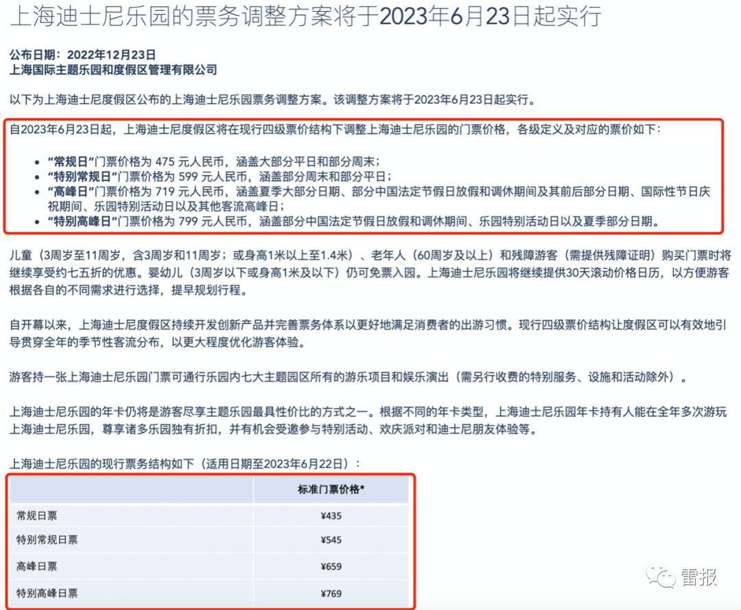 这次主角是上海迪士尼度假区,关于票务调整方案详情,具体来看,“常规日”(涵盖大部分平日和部分周末)的门票价格将由435元涨至475元,涨价40元;“特别常规日”(涵盖部分周末和部分平日)门票价格则将由545元涨至599元,上升54元;“高峰日”(涵盖夏季大部分时间、部分中国法定节假日、国际性节日、乐园特特别活动日等期间)门票售价将由659元升至719元,涨幅为60元;“特别高峰日”(涵盖部分中国法定节假日、乐园特别活动日等)门票价格将由769元涨动30元至799元。