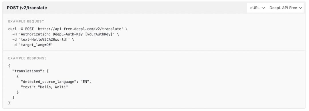 最后,是 DeepL API。开发人员能够使用其基于 JSON 的 REST API,将 DeepL 机器翻译技术直接嵌入到他们的产品和平台中。公司可以使用其 API 来翻译浏览器、聊天程序、电子邮件客户端或文字处理器中的文本。它可以翻译Word、PowerPoint、PDF 文本和 HTML 文件。
