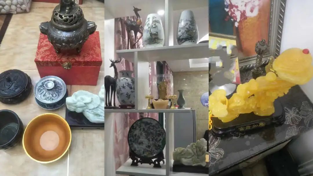 他看直播两三年了,自称目前已经花了15万元左右,买了字画、陶瓷、玉石翡翠、保健品,还有各种生活用品,并且对这样的直播深信不疑。下图为国强在直播间购买的部分产品,据他介绍,以下每件单品购入价在500元左右,“市场价过万元”。
