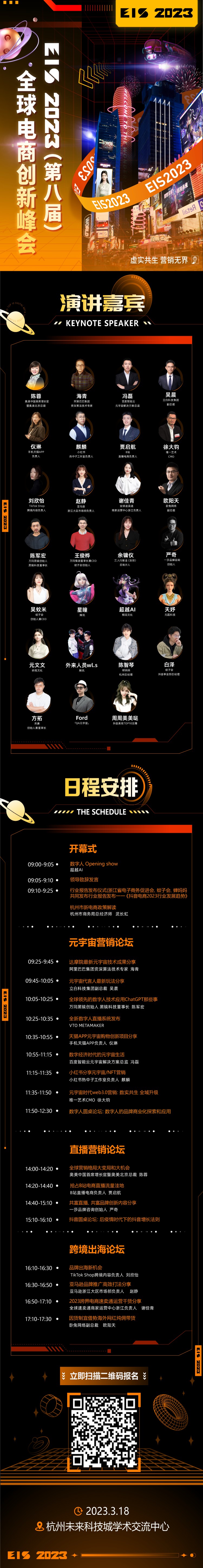 本次峰会主要围绕两方面展开。其一是元宇亩、ChatGPT等新兴热点的爆发对电商、直播电商以及品牌营销带来的变革、机会以及创新案例进行剖析;