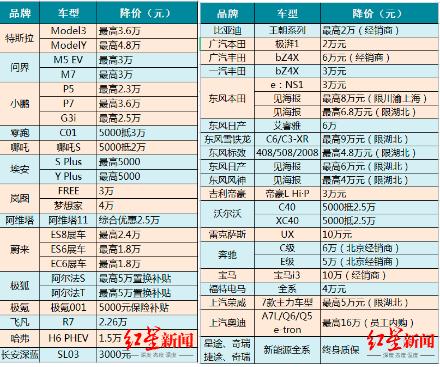 据红星资本局不完全统计,截至目前已有至少30个汽车品牌参与到这场价格战,最高优惠超过10万元。有的是品牌官方的活动,有的是地区经销商促销;有的是直接降价,有的是抵现、保险补贴、金融贴息、赠送选装包等间接形式。