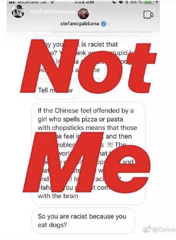 面对公关危机,D&G的处理方式无疑是“傲慢”的,其首席设计师堂而皇之地在社交软件上回怼网友,并发表辱华言论。截图曝光后,又以“账号被盗”为由矢口否认。