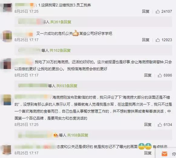 在我看来,海底捞在这次危机中的表现堪称经典。反应迅速、主动认错,不回避、不推诿。管理层勇于担责,并且拿出了解决措施,比如加强内部监管机制,对涉事门店的关门整改等。