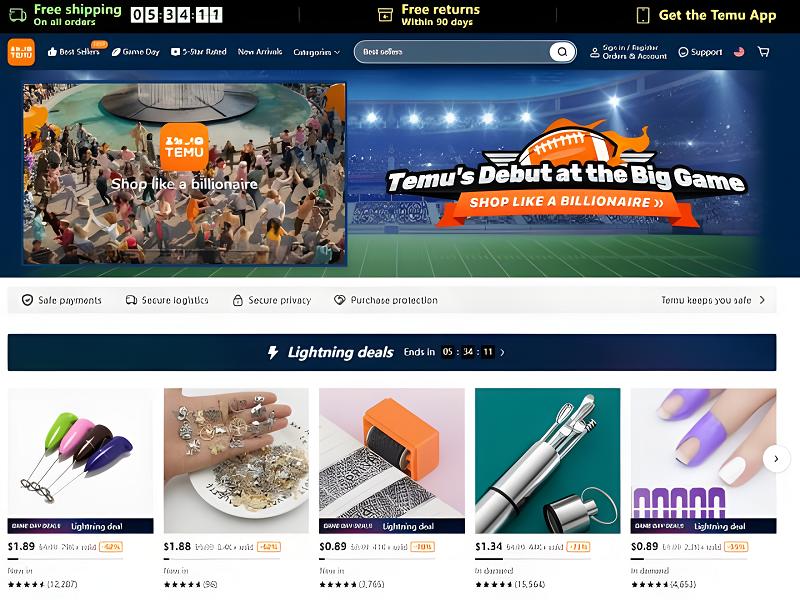 这家公司在美国的产品名叫Temu,是国内鼎鼎大名的电商公司拼多多旗下跨境电商平台。该平台的产品去年9月1日才刚上线。但根据电子商务数据公司“市场脉搏”的数据,仅过去一个月时间,Temu就成为了全美下载次数最多的购物APP,超过了本地巨头亚马逊河、沃尔玛。此后Temu在美国及加拿大的数据也在一路飙升,这才有了今年开春投超级碗广告的底气。Ad Age和USA Today's Ad Meter的数据显示,今年超级碗一条30秒的广告花费为700万美元。