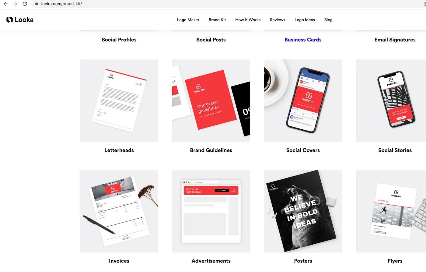 一旦你选定了你喜欢的 logo,你就可以购买这个 logo,用它的元素去制作同一系列的品牌相关设计。这个人工智能工具能够帮助你在几分钟内生成各种营销材料,可以节省大量的时间,如果你雇人来做这些事情的话,就要多花很多时间了。