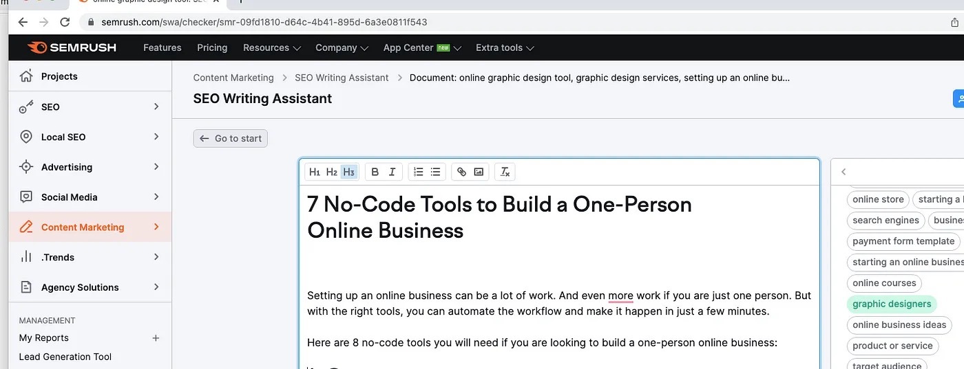 SemRush中的SEO写作助手