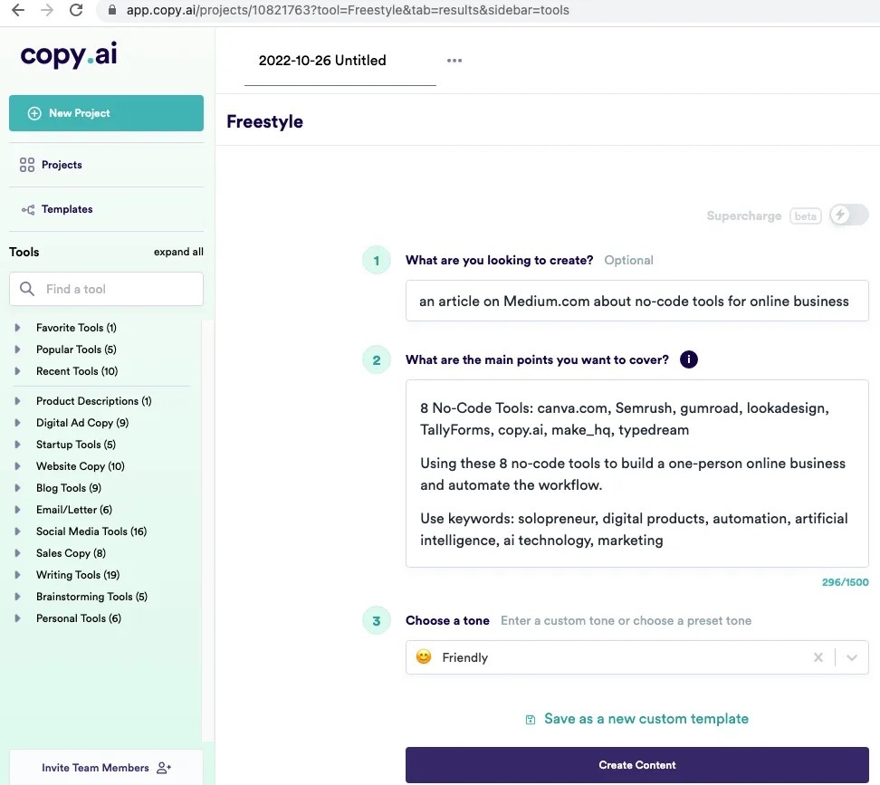 我给了Copy.ai一些指示来写这篇文章