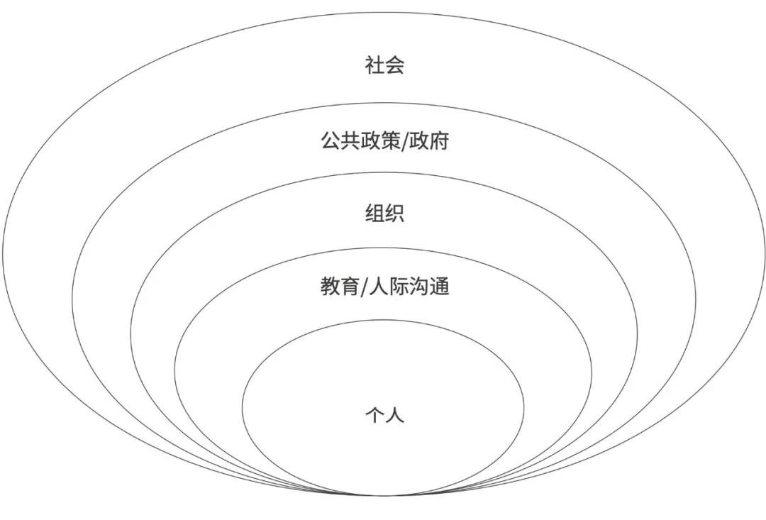 既然接受了缺乏睡眠是一种缓慢的自我安乐死的观点,那么我们可以做些什么呢?对我来说,解决这个问题在逻辑上需要两步。首先,我们必须了解为什么睡眠不足的问题似乎总是顽固不化,并因此一直在向更坏的方向发展。其次,我们必须制定一个结构化的模型,在可以找到的每个可能的关键点上实现改变。没有单一的、灵丹妙药一般的解决方案。毕竟,导致整个社会睡眠不足的原因不止一个,而是很多。我在下面画出了现代世界的睡眠新愿景——通过多层级干预机制来改善睡眠现状的图谱,如图1所示。