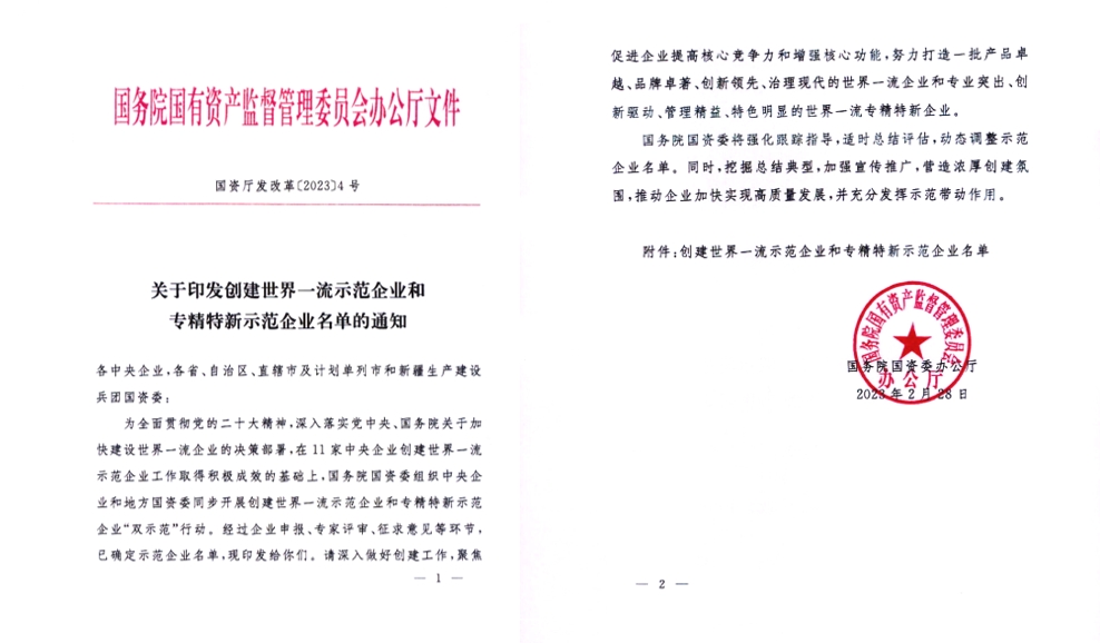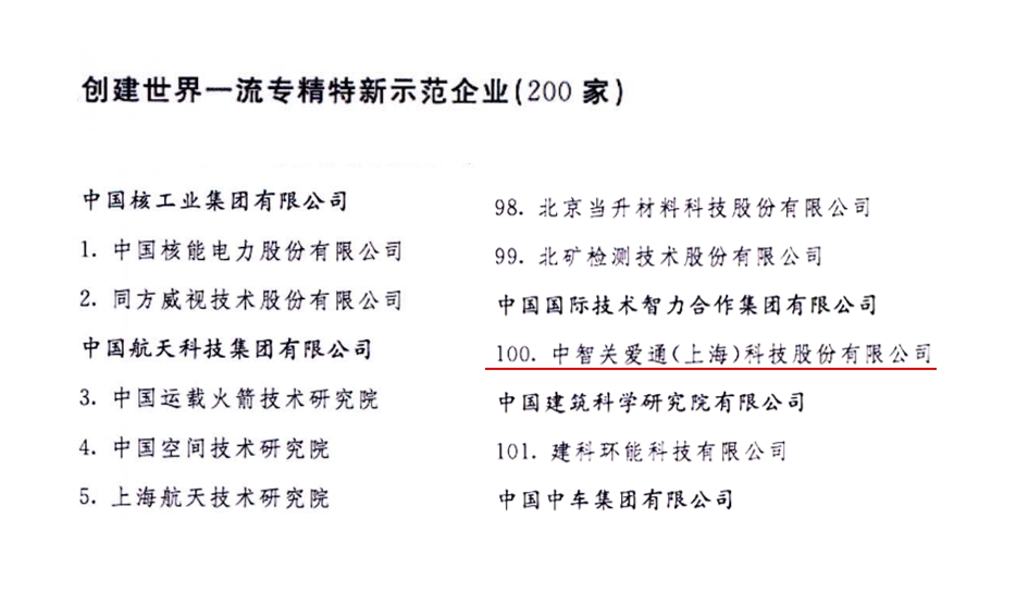 近日,国务院国资委下发了《关于印发创建世界一流示范企业和专精特新示范企业名单的通知》。中智关爱通(上海)科技股份有限公司(以下简称“中智关爱通”)成功入选“创建世界一流专精特新示范企业”名单。此次入选充分肯定了中智关爱通的专业实力、创新能力和发展前景。