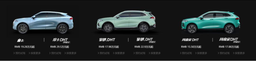 对于消费者而言,搭载柠檬DHT混动技术的魏牌,与搭载DMi技术的比亚迪宋的体验差不多,但价格却比宋系列高出一个档次,就连最便宜的玛奇朵PHEV, 也要17.88万元起步;
