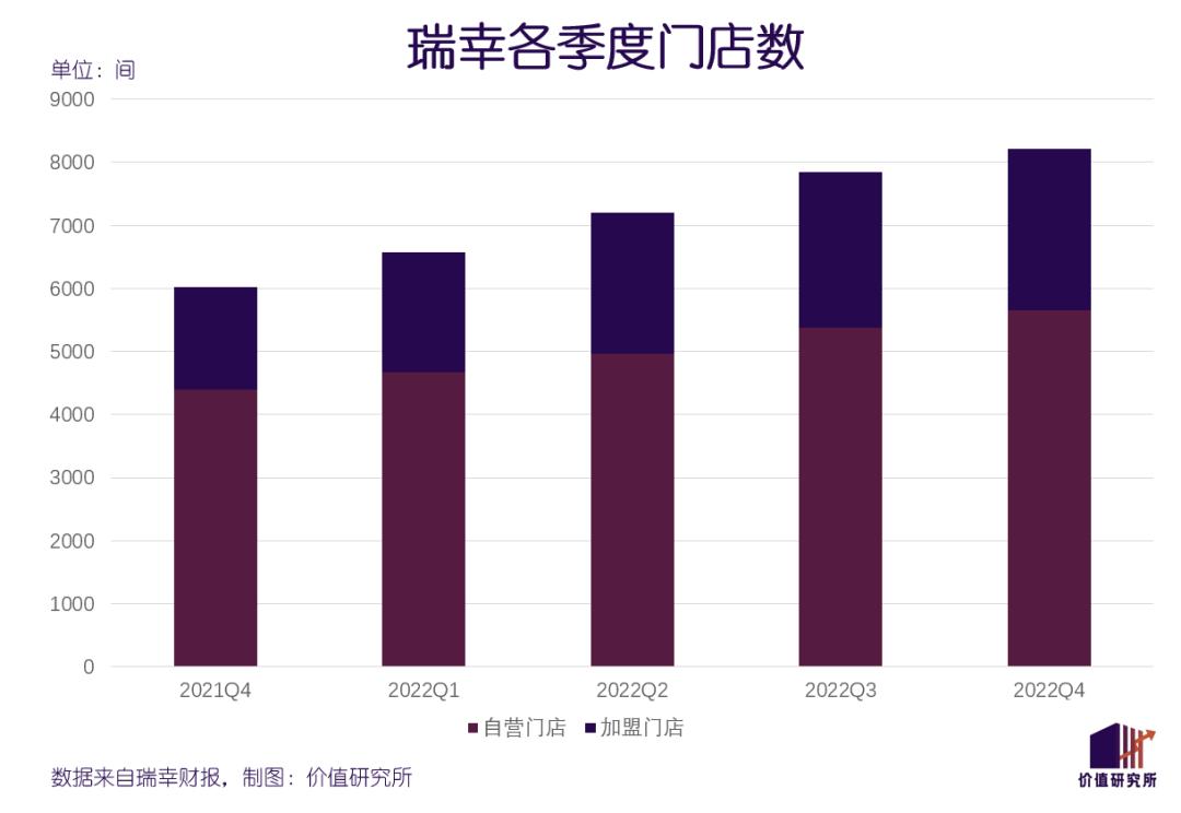 虽然疫情拖慢了瑞幸的开店速度,但凭借自营门店的增长,瑞幸距离万店目标还是越来越近了。数据显示,截止去年四季度末,瑞幸自营门店、加盟门店数量分别为5652家和2562家,同比分别增加了1255家和935家。