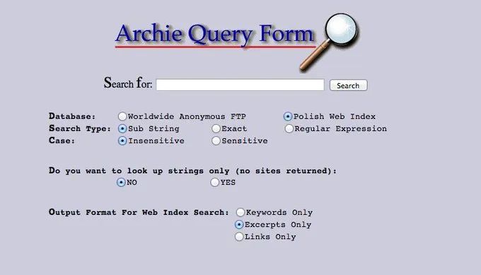 人们一直在想办法得到更准确的答案。在万维网还没有出现以前,人们依赖ftp协议共享文件资源。当有一个可搜索的文件名列表(叫Archie)出现——你得一字不差地输进去文件名,返回的是一个能下载该文件的ftp地址。