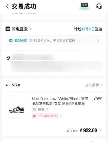 王女士在得物App以922元购买了一双耐克Dunk Low熊猫鞋,当她想挂到得物上出售时,需要经过一次鉴定,当她将鞋子“原封不动”寄给得物后,得到的鉴定却是“假的”。“防盗扣、证书、鞋盒都是得物原装的,全新未穿,结果客服说,鉴定结果显示是假扣、假证书,还扣了40多元保证金。”王女士说,最后的协商结果只是退还40多元保证金。由于仓库开箱视频为顺丰快递,而王女士寄出用的是京东快递,她怀疑得物鉴定有操作不当甚至调包的行为,所以至今未退货。