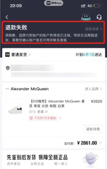 拥有七八十双球鞋的李先生是一位发烧友,时隔一年多后,他才翻出了一双从得物以2800多元购入的麦昆,试穿后发现尺码偏小,于是他便挂到之二、红布林等平台出售,结果两个平台都对此鞋鉴定为假,但是得物复验为真。随后,张先生请一位开二手奢侈品店的朋友鉴定,这位朋友也判定为假货,理由是几处明显的瑕疵:比如真鞋的鞋垫可以抽出来,但得物购入的麦昆鞋垫无法抽出,黏在鞋底上。“得物始终不愿意承认鉴定出错或给出‘假一赔三’的解决方案,由于购买时间太长,连退款都几经波折。”李先生最后只能选择退货以减少损失。