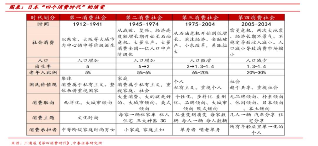 书中仅以时间作为分野,无疑是较为巧合的。但如果仅以社会财富的发展阶段去做区分,例如人均GDP水平,则不能很好地解答这类现象为何并没有在其他发达国家比如美国出现。我们认为,以社会的老龄化程度,即65岁以上人口占到总人口的比例,作为区分消费阶段的指标较为合适。如果以这个这个指标去衡量,则今天的中国平均处于第三消费社会,并将继续向第四消费社会演变。