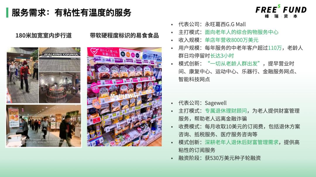 无论是永旺的葛西G.G Mall还是Sagewell,他们都是以老年人为核心,持续提供有粘性、有温度的服务,从而赢得了市场。