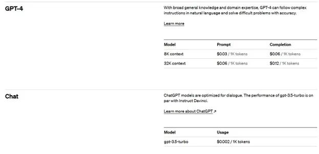 实际上,目前这些AI助手的运行成本并不低。按照Open AI公布的GPT-4的API费用表,为每输入1000个字符(约合750个单词),价格为0.03美元,每生成1000个字符,价格为0.06美元。也就是说用户每问一次,成本超不多就是1毛钱。