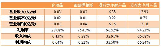 而这两种产品超过94%的恐怖毛利率,也造就了爱美客整体的高毛利。