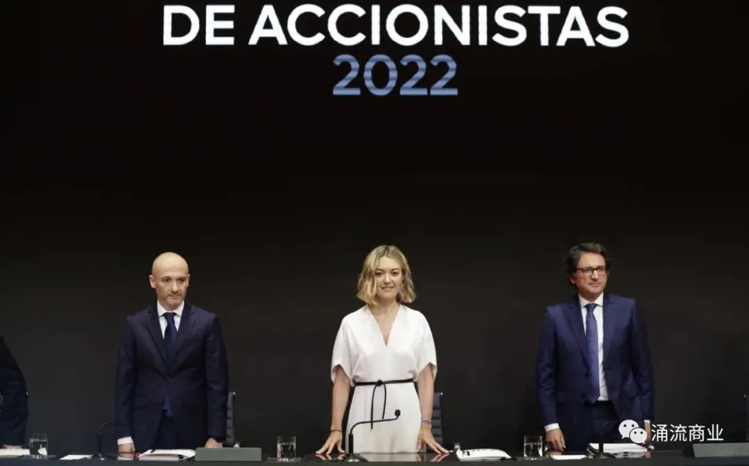 Marta Ortega(中)和Oscar Maceiras(左)出席股东大会