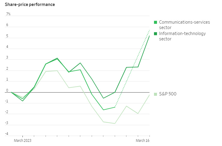 很有意思的是,科技股近来一直是在银行业暴跌而受到打击的美国市场上,一个极为闪耀的亮点。