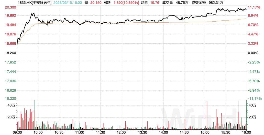 在外部环境多变的情况下,平安健康2022年业绩大超市场预期。在财报发布后,平安健康股票随即成为市场热点,截至3月17日收盘,财报后的4个交易日暴涨15.02%,仅3月13日单日涨幅超10%。