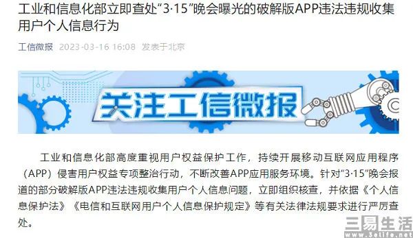 那么要如何解决围绕破解软件形成的这个死结呢?唯一行之有效的方式可能是从渠道入手,让用户找不到获取破解软件的方法,而这也正是监管机构正在做的事情。在此次3·15晚会曝光了破解版APP的违法违规行为后,监管部门随即开始进行整治,并组织应用分发平台、电商平台、搜索平台第一时间对破解版APP进行排查,组织专业检测机构对APP及软件开发工具包(SDK)开展专项检测。