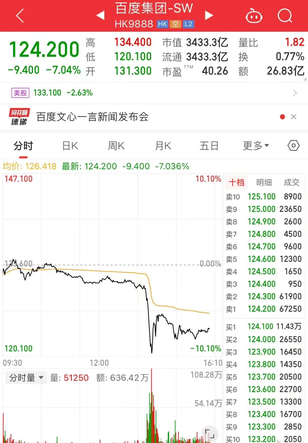 这不,百度的文心一言昨天刚一发布,股价就大跳水了。