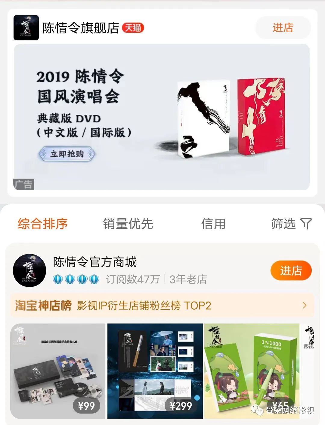 双男主题材爆火之后,双男主剧集便成了发展周边产业的聚宝盆,从1.0《镇魂》联名蜂蜜,对IP商业价值挖掘有限,到2.0《陈情令》最大化挖掘剧集IP商业价值,除了举办告别演唱会、开启超点等方式之外,《陈情令》自主开设的旗舰店、官方商城都在售卖剧集周边产品,产品从几块钱的笔,到两千六百多的手办,价格不等。3.0《山河令》不但合作娱影文创、造点新货推出了包括扇子、配饰、手镯等多种产品的正版周边,而且在举办告别演唱会时还在极力卖周边。