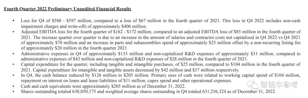 Arrival在2022年第四季度的行政开支为1.33亿美元,相比2021年的4300万美元增长了209.3%;(非资本化)研发开支为3100万美元,相比2021年的2800万美元增长了107.14%。截至2022年12月31日,现金和现金等价物为2.05亿美元。