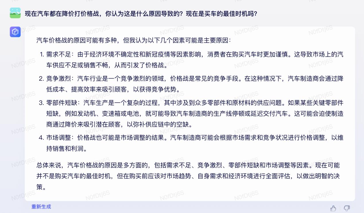 对于近期的汽车厂商价格战,它的分析也是有理有据的,虽然不能直接拿来作为对应话题解读内容的素材,但是提供了一个基础思路或者说提纲: