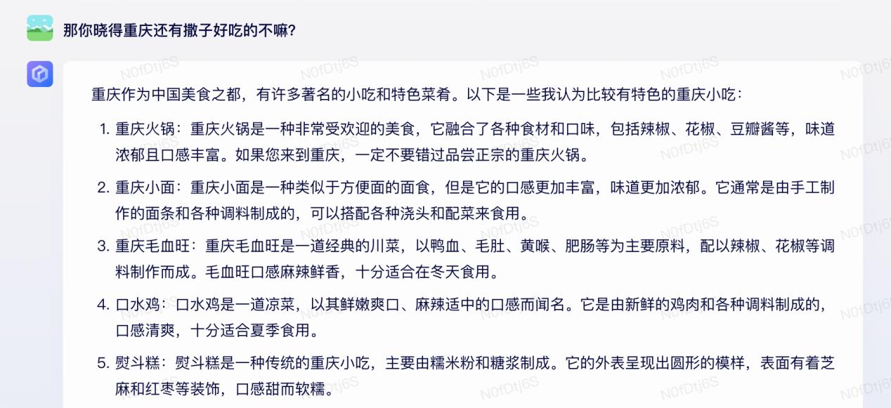 作为一名重庆人,对自己的普通话水平我还是有自知之明的,毕竟四川话与普通话结合的“川普”也声名在外,我也试着用“川普”去问文心一言问题,结果都能无障碍听懂: