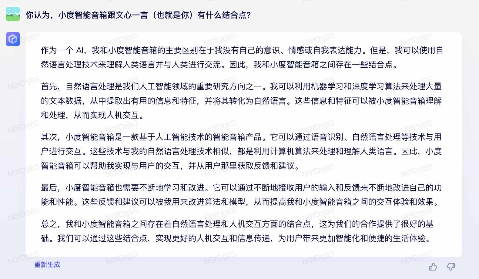 文心一言当然不会不看好智能音箱,TA和百度旗下的小度还有很多合作空间,大模型技术也将会给智能音箱以及智能语音助理带来全新的可能性: