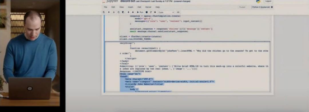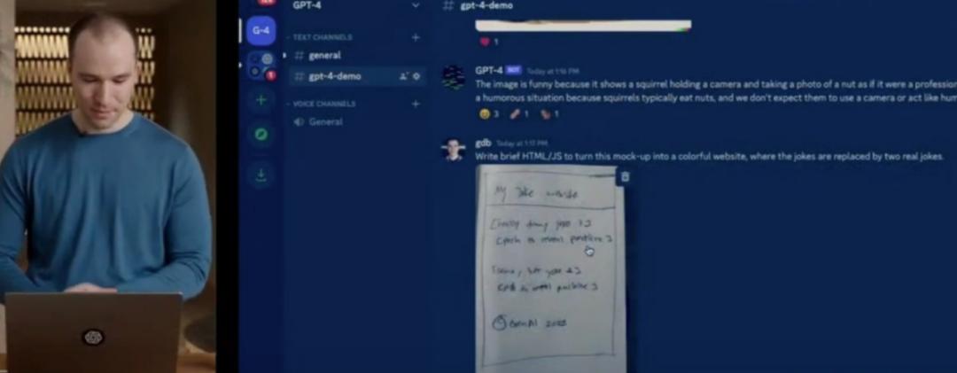 一个生动的例子是,有人将自己设计的网站草图用笔画下来,再将手绘内容拍照输入系统。10秒钟,GPT-4不仅识别了图片内容,还生成了一套搭建一个真实网站的代码。