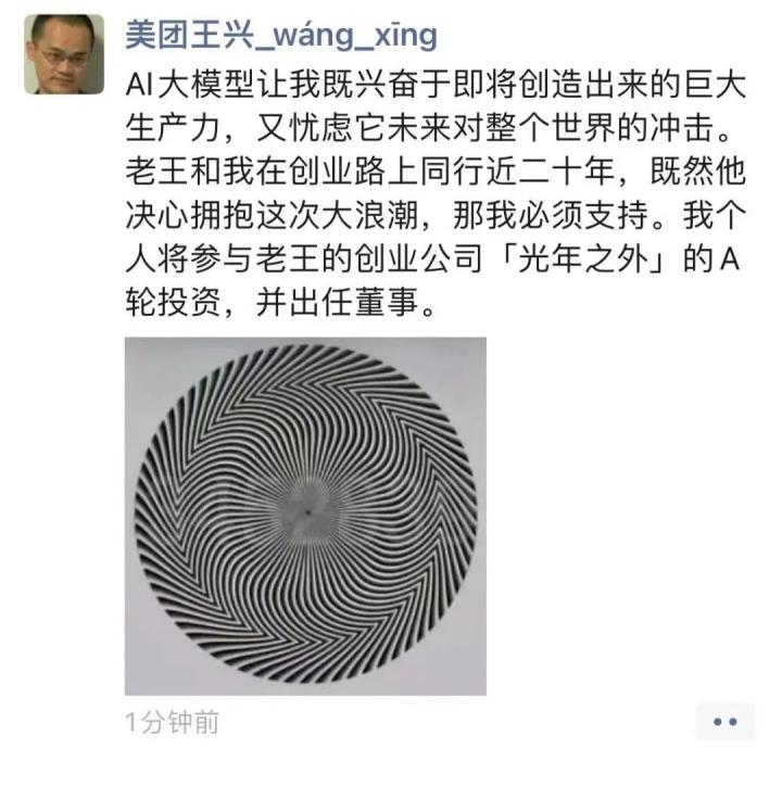 随后,美团创始人王兴也加入。王兴在3月8日发布朋友圈,称个人将参与王慧文创业公司“光年之外”的A轮投资,并出任董事。