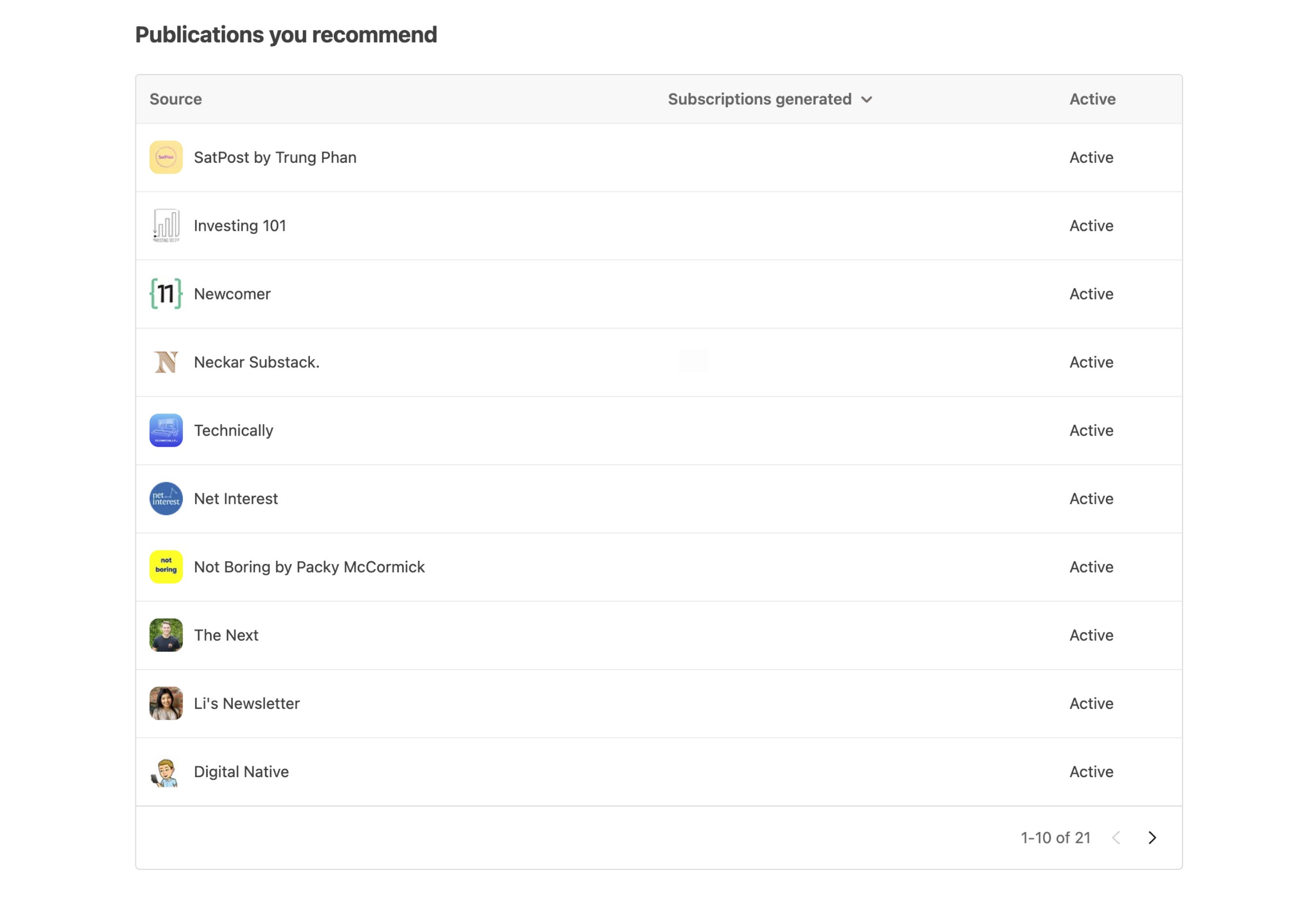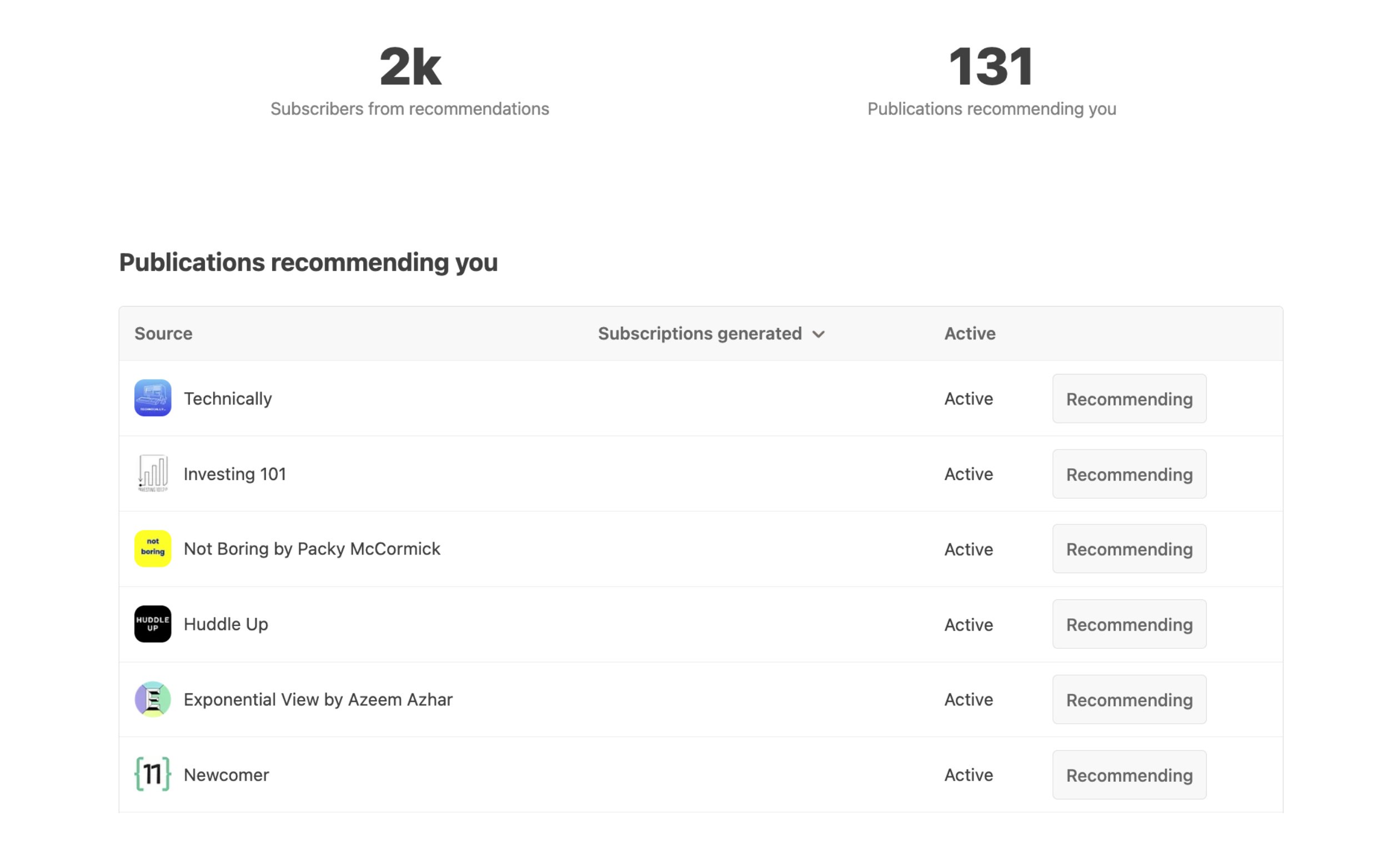 尽管最近才重返 Substack,但我们已经看到了推荐的好处。多亏了其他发行商的推荐,我们最近新增了 2000 多位订阅者——这可不是什么小数字。