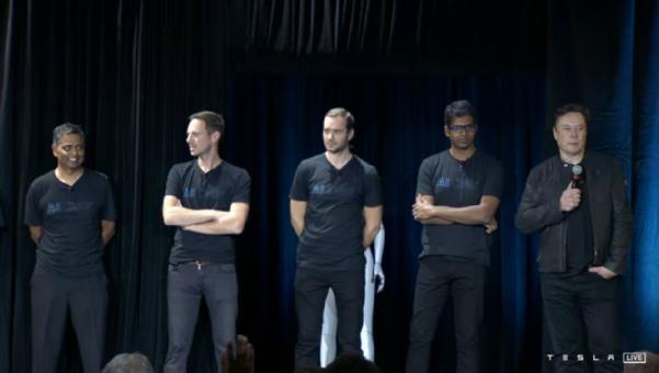 特斯拉团队(左起):硬件总监及Dojo负责人Ganesh Venkataramanan;工程总监Milan Kovac;人工智能总监Andrej Karpathy;软件总监Ashok Elluswamy;总忽悠师Elon Musk ,2021 Tesla AI Day