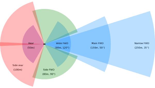 特斯拉8个摄像头覆盖范围