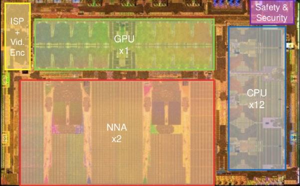 这里的ASIC指的便是占据整块芯片最大面积的两颗神经网络处理单元(NNA),即NPU。每颗NPU核的峰值性能可以达到每秒36.86万亿次运算(TOPS),功耗却只有7.5W。与之相比,GPU内核只提供0.6TOPS的算力,成为配角。