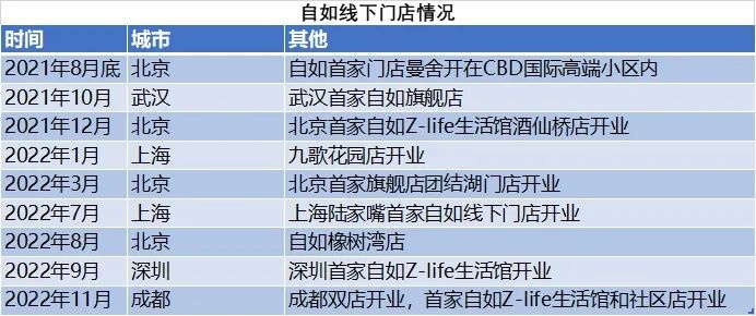 一个明显的变化是,自2021年2、3月上线增益租后,自如开始布局线下,在长租领域重点城市开始开设门店,门店主要包括三种,家装(Z-life)生活馆、社区门店、旗舰店。