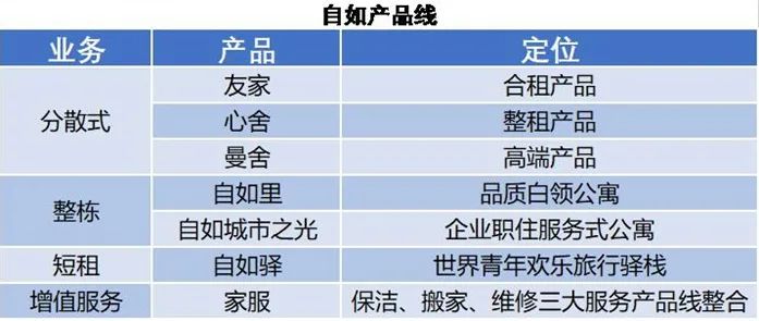 2016年自如从链家独立出来后,2018年上线资管平台,被视为入局集中式公寓,同年推出独栋品质白领公寓自如寓、企业职住服务式公寓自如城市之光及世界青年欢乐驿站自如驿三大产品线。