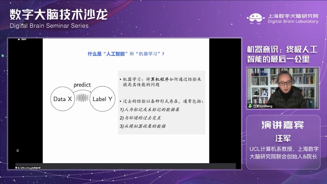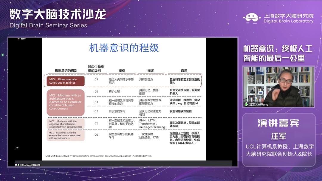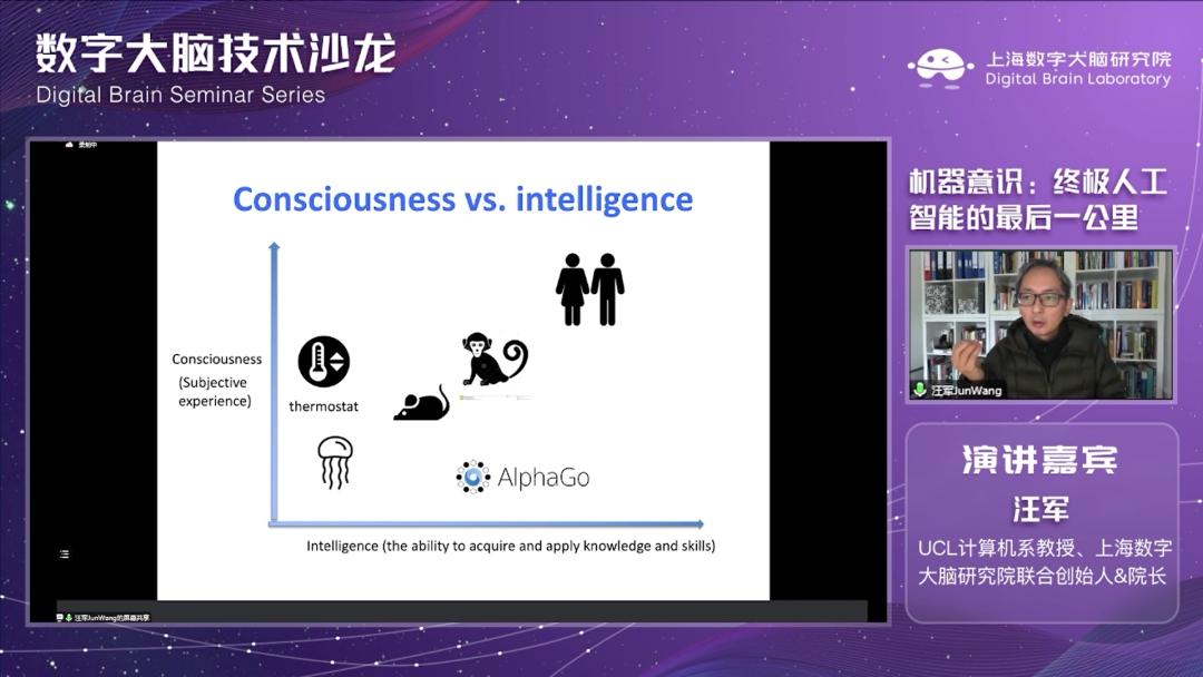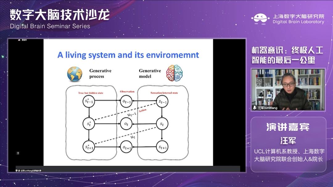 近日,CMC资本孵化企业上海数字大脑研究院第一期技术沙龙开幕,沙龙邀请到UCL计算机系教授、上海数字大脑研究院联合创始人兼院长汪军教授与大家分享《机器意识:人工智能终极问题“最后一公里”》这一话题,为大家讲述当今深度学习的困境及如何把神经学习和AI融合,以机器意识破局。本期「C位」刊载汪军教授在沙龙上分享内容的完整视频和对应的文字信息。
