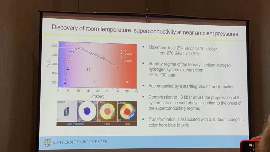 3月7日下午,美国罗切斯特大学的物理学家兰加·迪亚斯(Ranga Dias)及其团队在美国物理学会会议上宣布,他们已经创造出一种可以在室温(room temperature)条件下实现超导的全新材料。消息发布后,在全球引起轩然大波。
