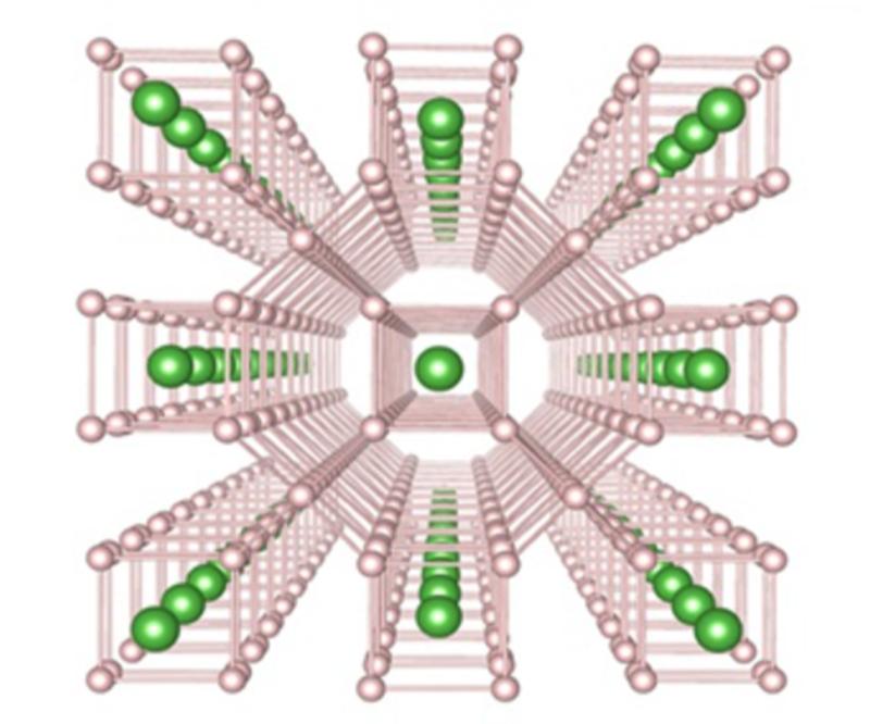 图3:LaH₁₀笼型结构,粉红色代表La原子(粉色)构成笼子包裹住H原子(绿色),形成所谓的化学预压