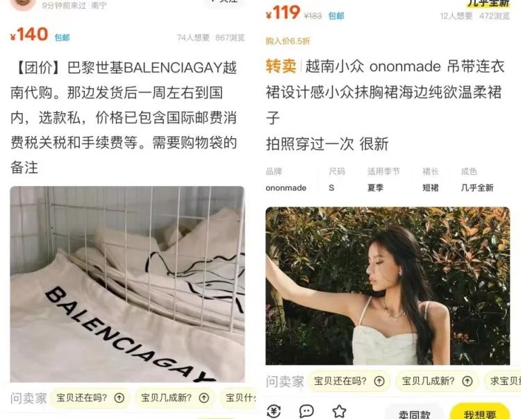 支付、物流等基建完善的意义是双向的。越南消费者买中国货更方便了,中国消费者买越南货亦然。在闲鱼,中国年轻人们组团海淘越南小众品牌女装,恶搞巴黎世家的“BALECIAGAY”购物袋也颇受欢迎。