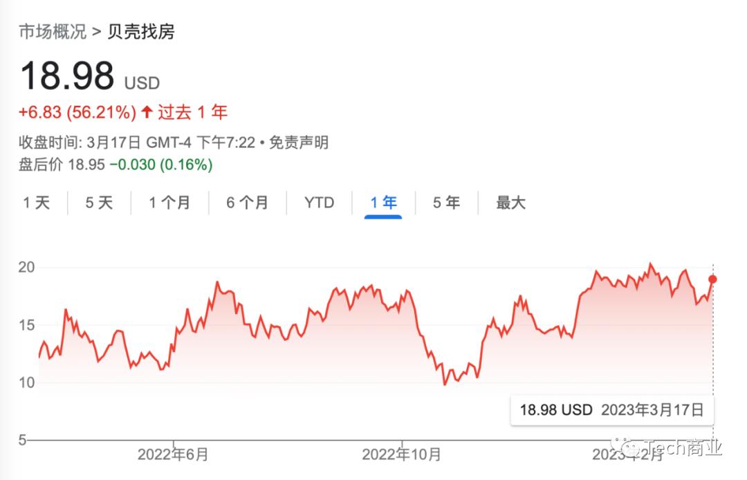 截至本文,贝壳公司过去一年股价上升56%,当前市值为237亿美元。