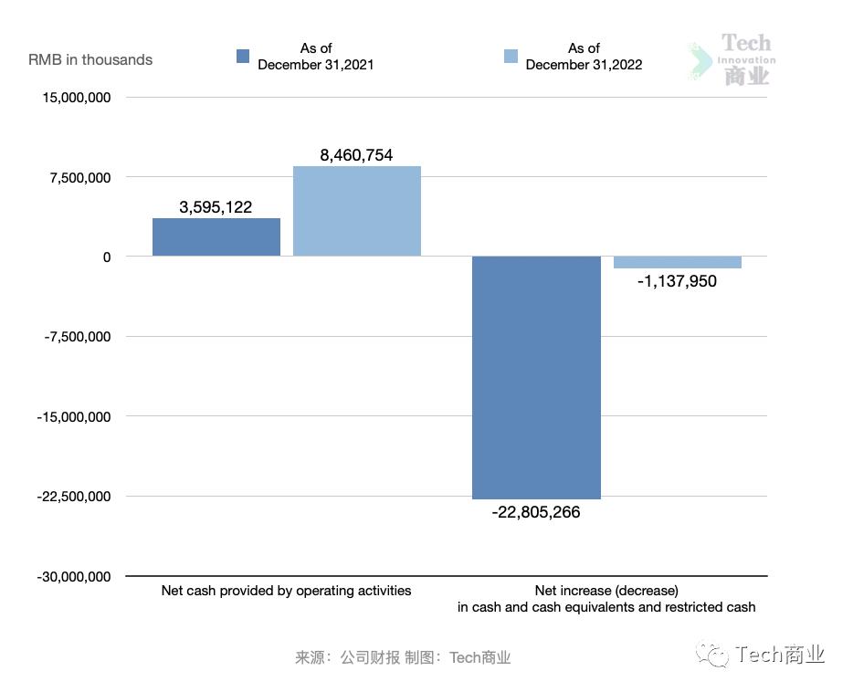 截至2022年末,贝壳公司经营活动现金流净流入85亿元,上一财年净流入36亿元,本财年该项有所增加。该公司2022财年现金及现金等价物和受限现金净减少11亿元,上一财年为减少228亿元,本财年该项资产额变化有所改善。