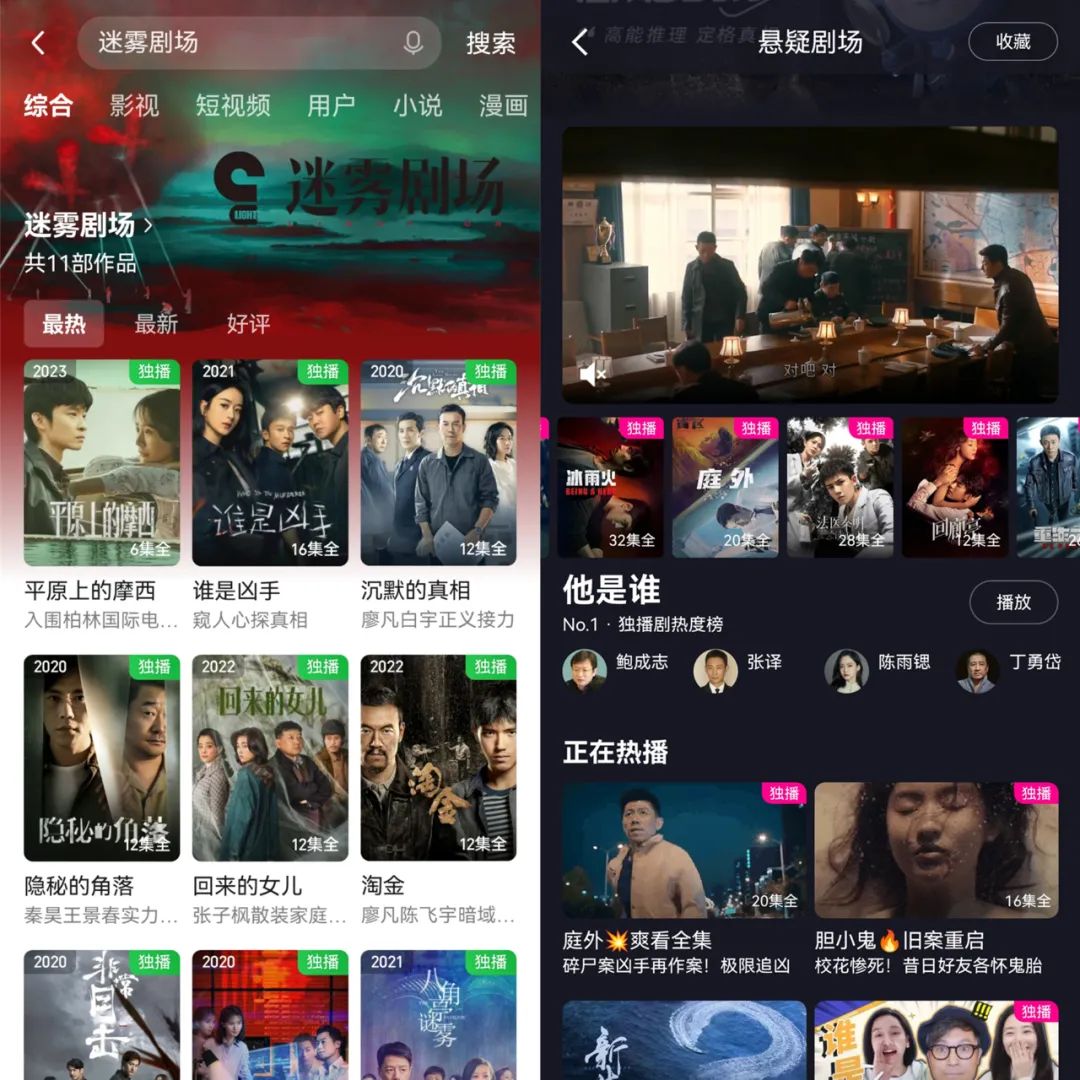 类似头部悬疑剧在不同平台你方唱罢我登场,倒也并不罕见。自从2020年以来爱奇艺、优酷分别搭建了迷雾剧场和悬疑剧场,每年都会有多部悬疑剧进入排播,包括腾讯视频的《双探》、芒果TV的《第十二秒》等剧,也有在该方向上的尝试。