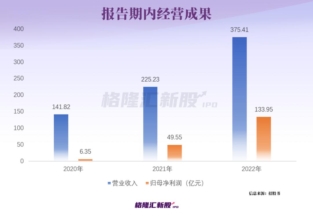 具体来看,公司营收由2019年的141.82亿元增至2022年的375.41亿元,三年复合增速约62.70%;相应的归母净利润则由6.35亿元增至133.95亿元,三年复合增速高达359.29%。