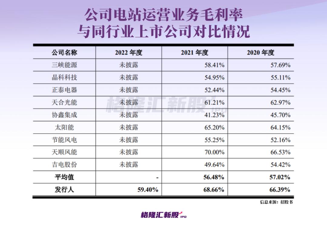 风能、光伏电站建设和运营方面,2020年、2021年公司的毛利率均高于同行业上市公司平均值(可比公司未披露2022年数据),主要得益于公司的电站业务更多往前端的项目资源开发方向发力,且自营电站主要为自行开发建设完成,降低了部分成本。