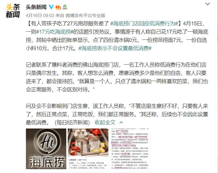 让我们回顾一下之前海底捞对于“17元薅羊毛”的回应:就算是一个人,只点了清水锅和一两样喜欢的菜,我们也会正常服务,不会区别对待。”